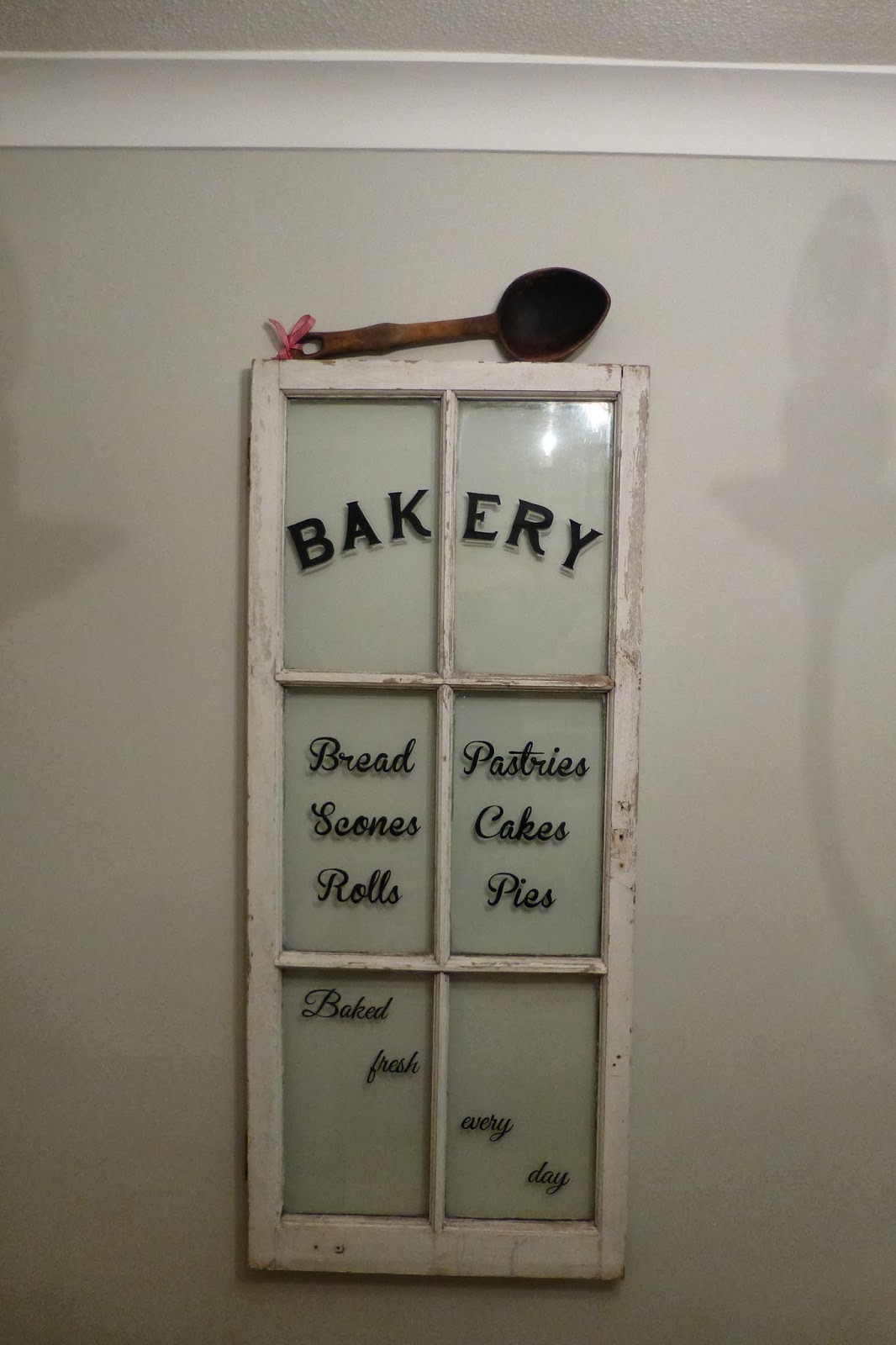 Oh yes, I did do one creative thing. I balanced a ginormous wooden spoon on top of the painted window in the dining room.